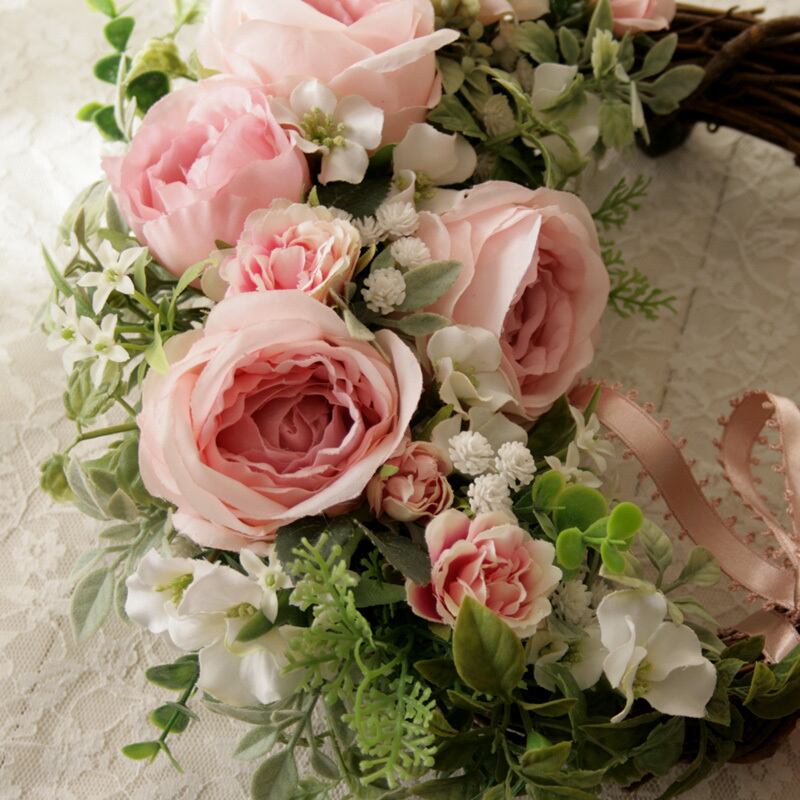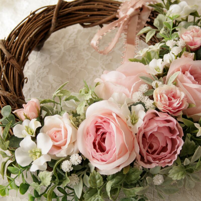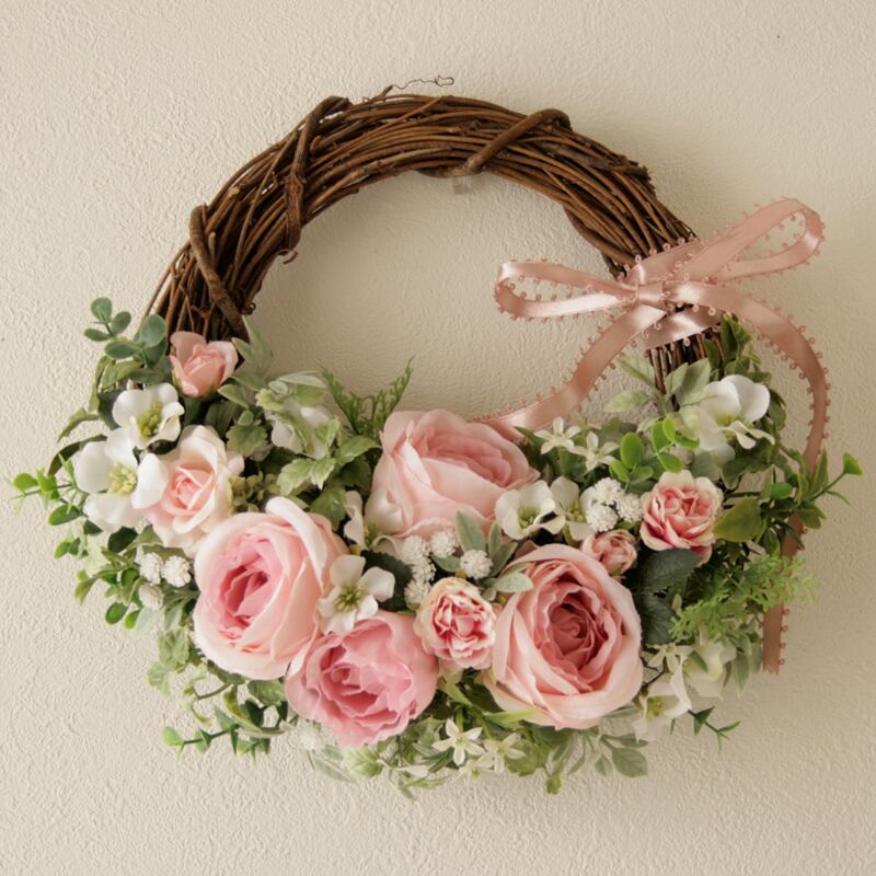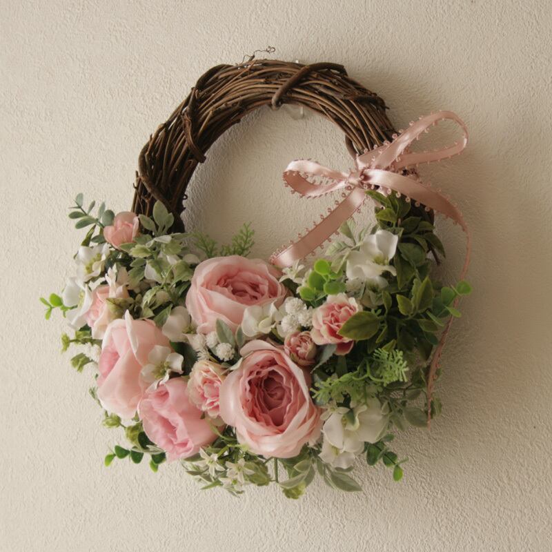 素材:アーティフィシャルフラワー(高品質な造花)、天然素材リース土台、リボン