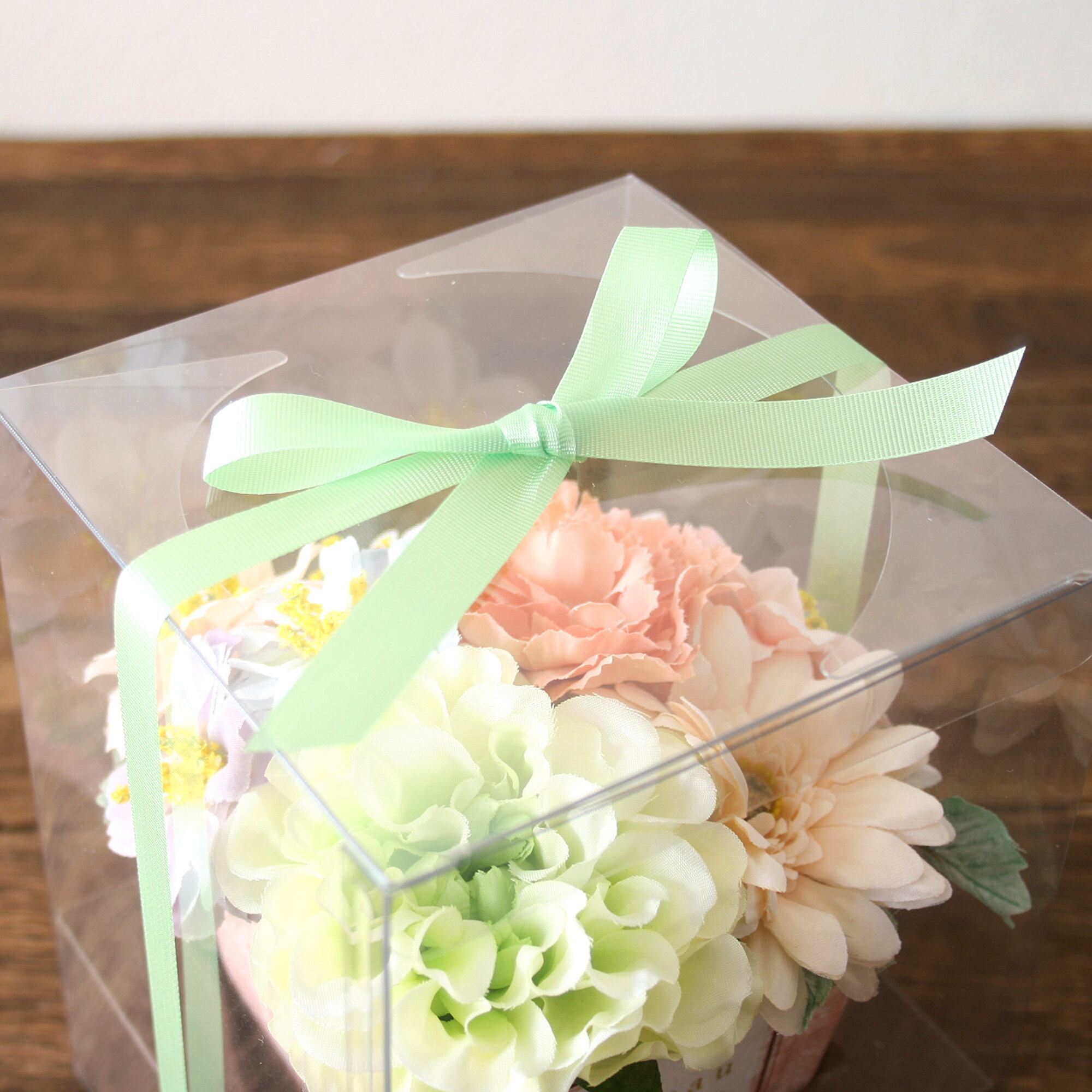 ダリアのパステルアレンジメント[グリーン]クリアケース入り