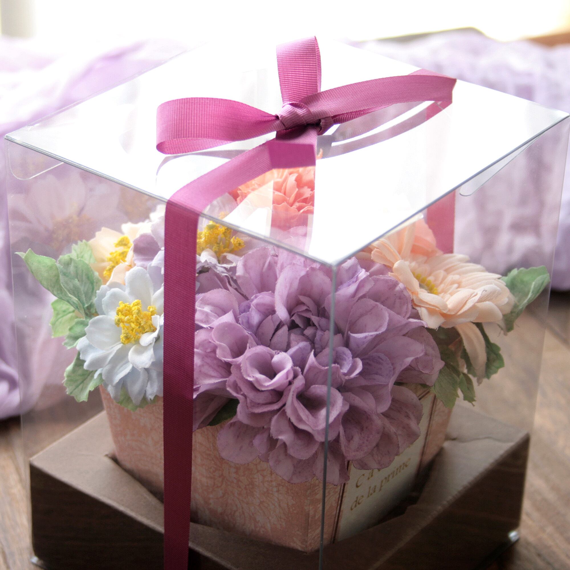 ダリアのパステルアレンジメント[ラベンダー]クリアケース入り