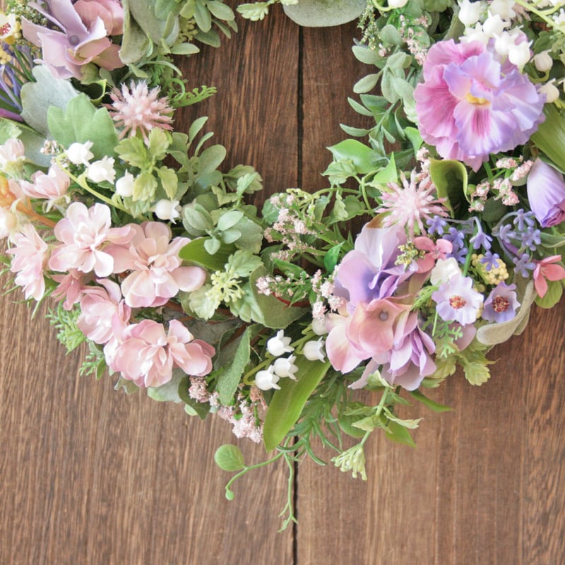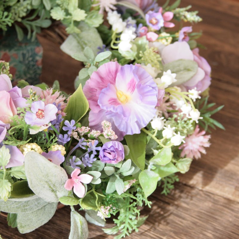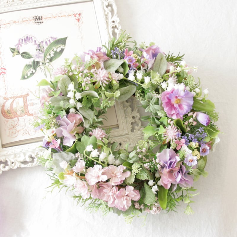 パンジーとスズランの春色リース可憐な小花のナチュラルデザイン