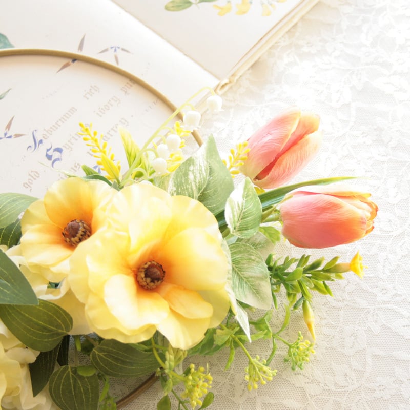 春のやさしい空気をそのまま飾っていただける、とっておきのリースです。