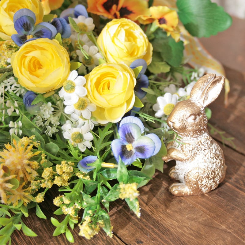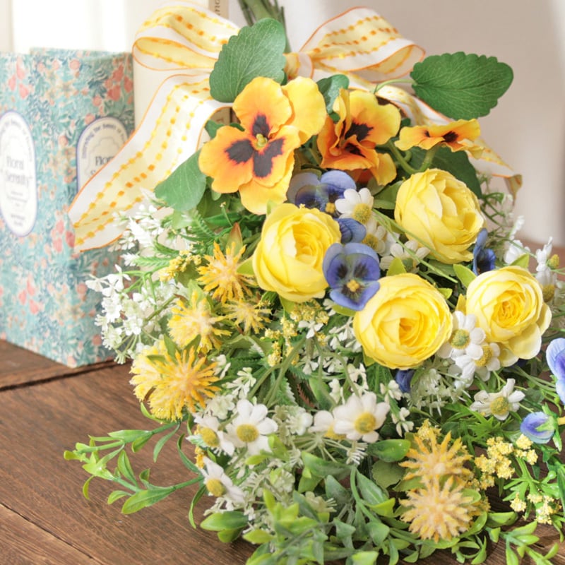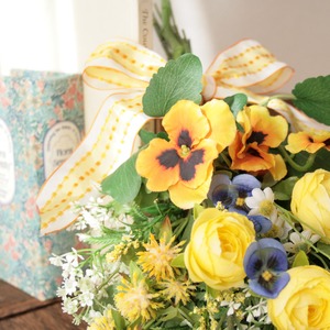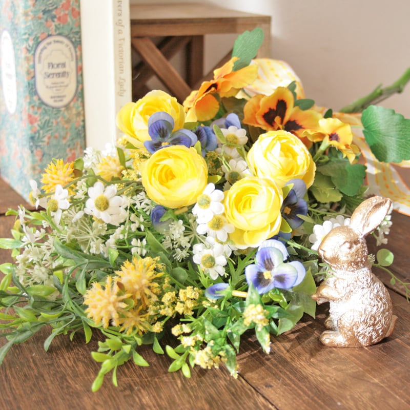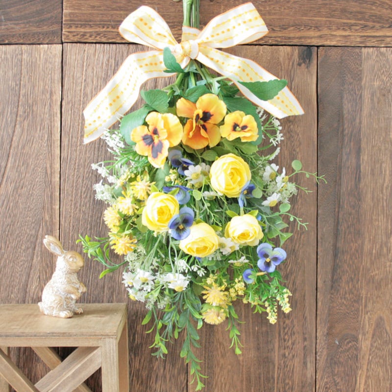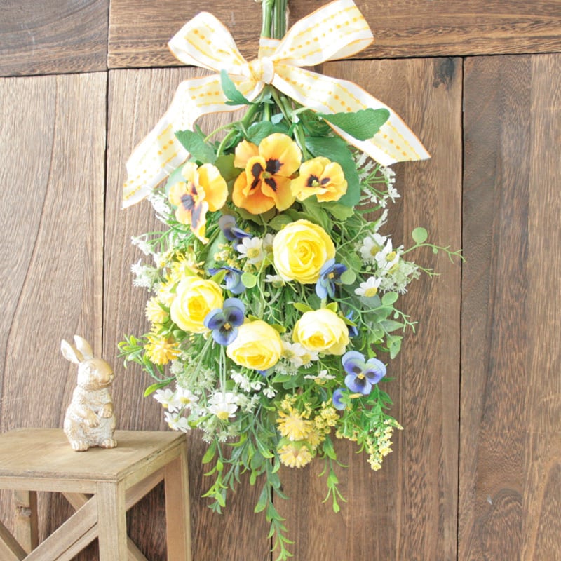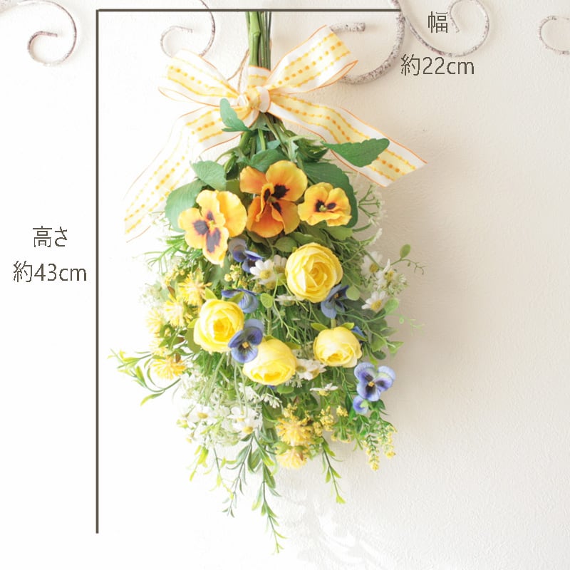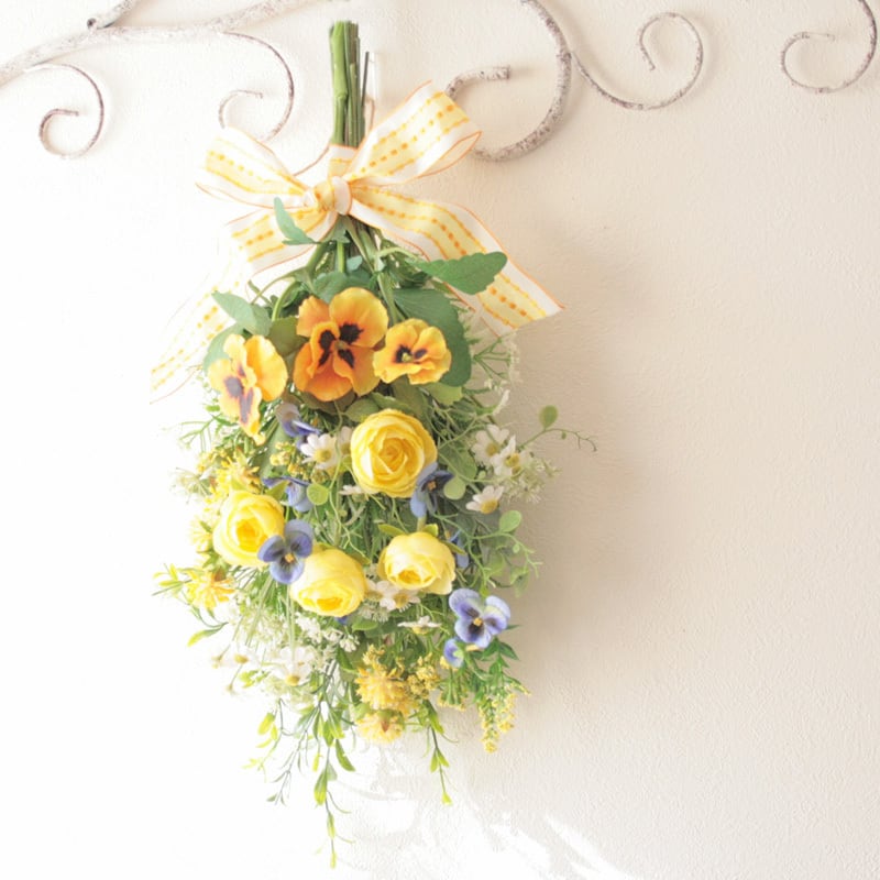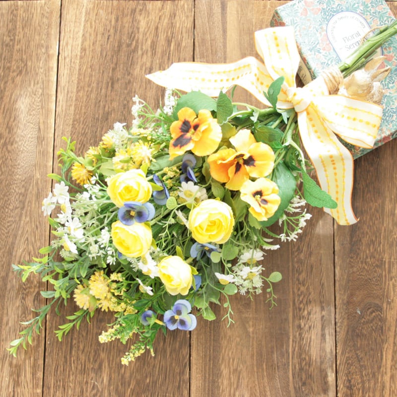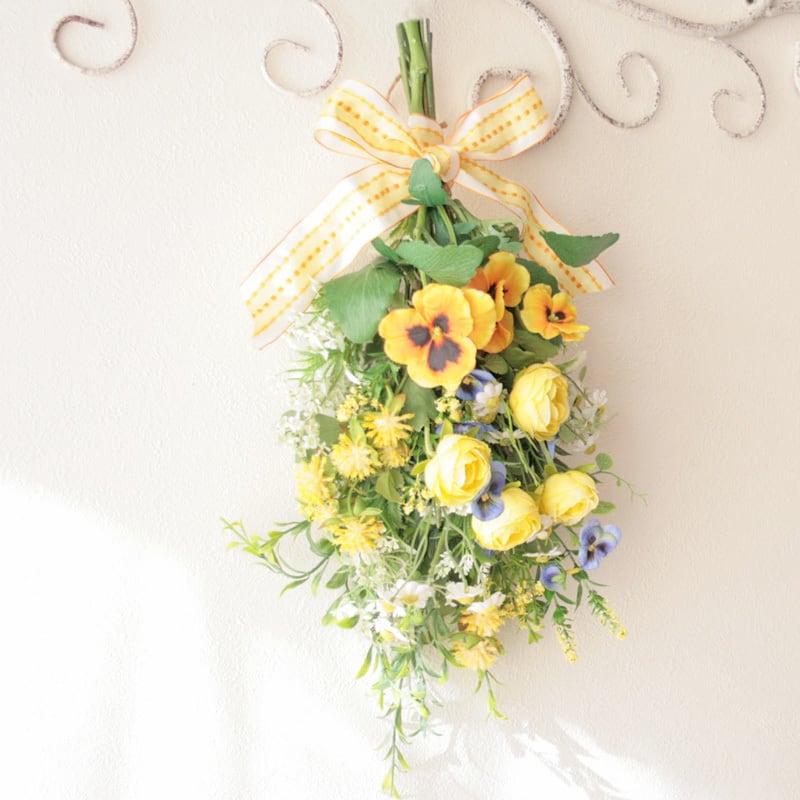 春を迎える イエローフラワースワッグ -ビオラ・パンジー-ラナンキュラスと小花を束ねて -