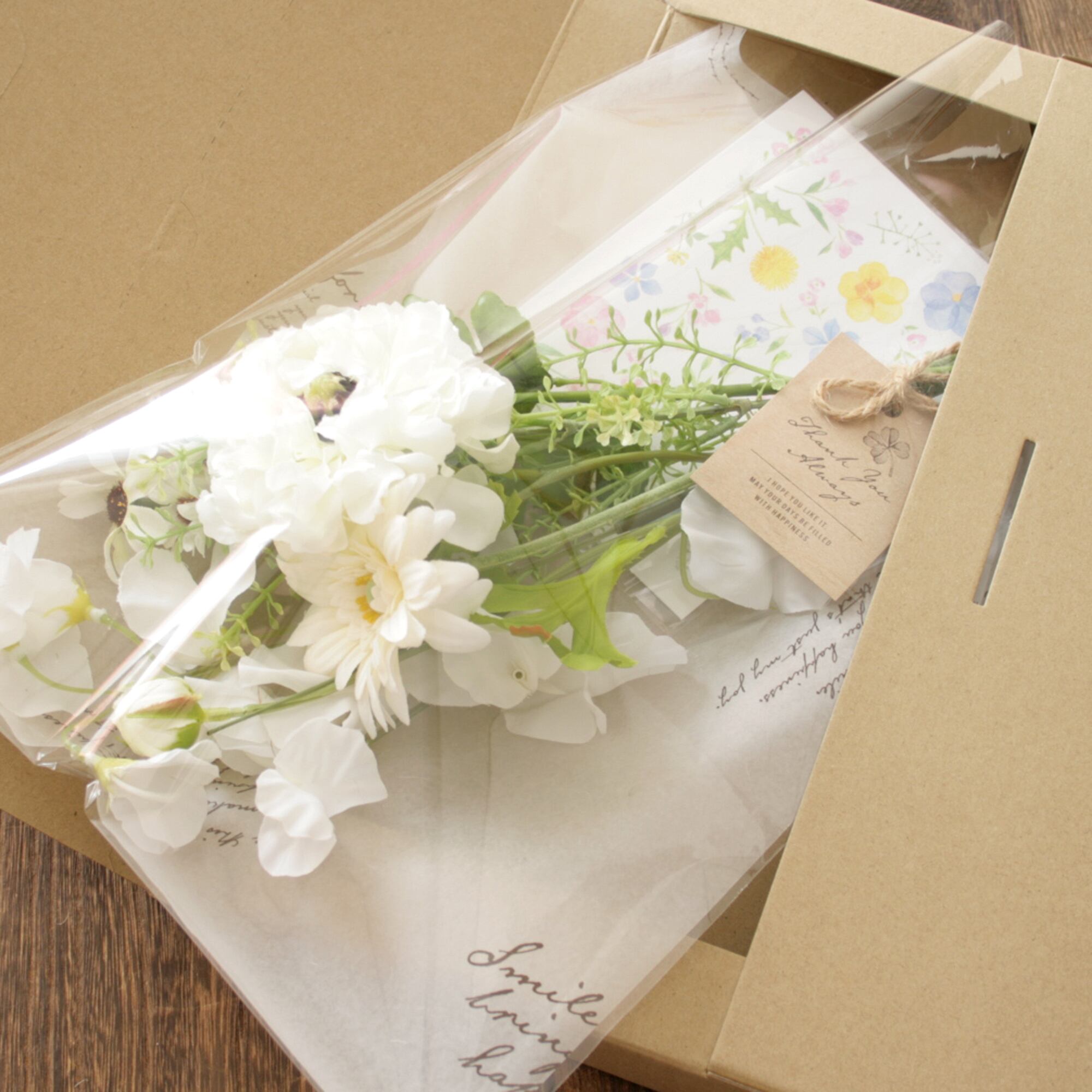 ホワイト×グリーンでまとめた花束セットです。