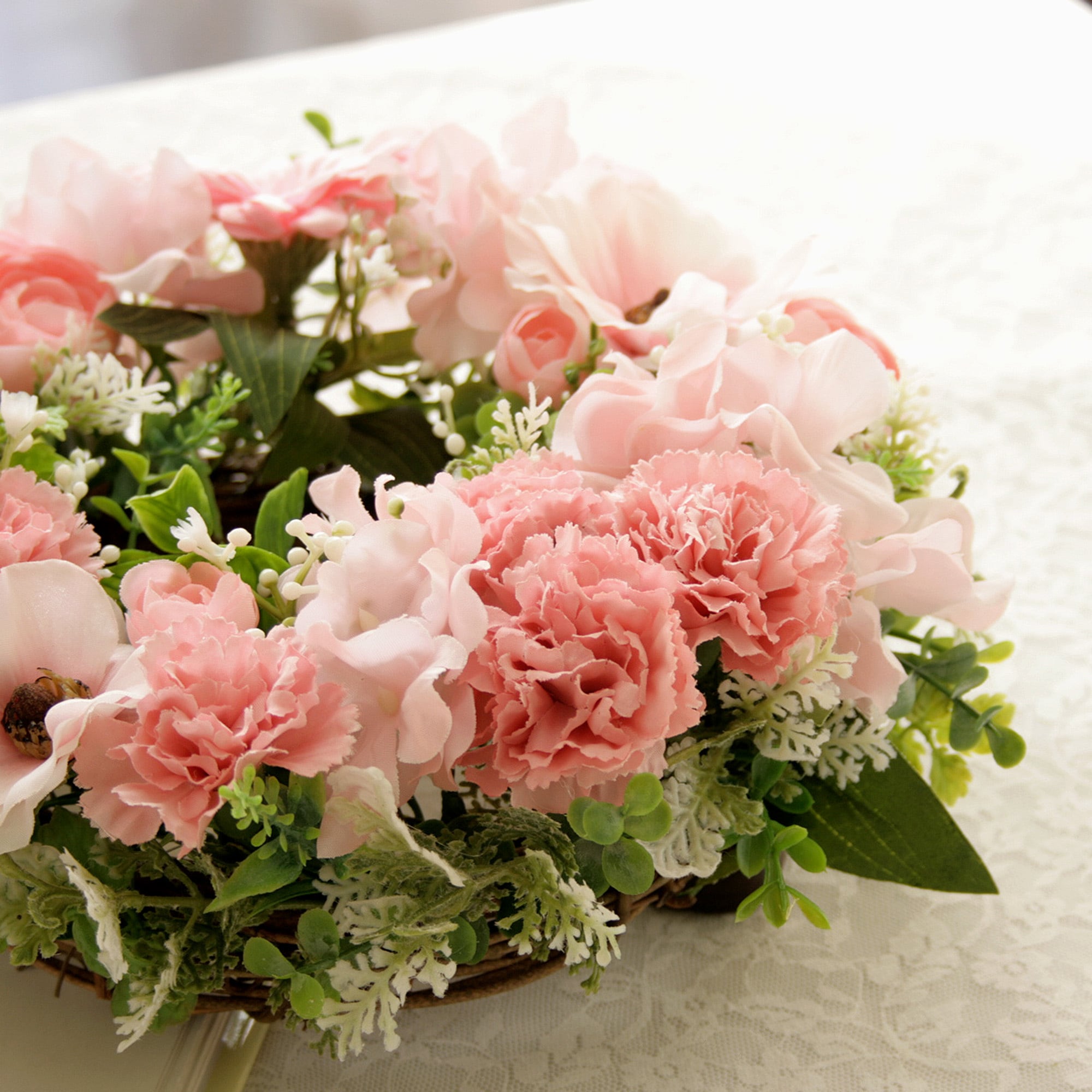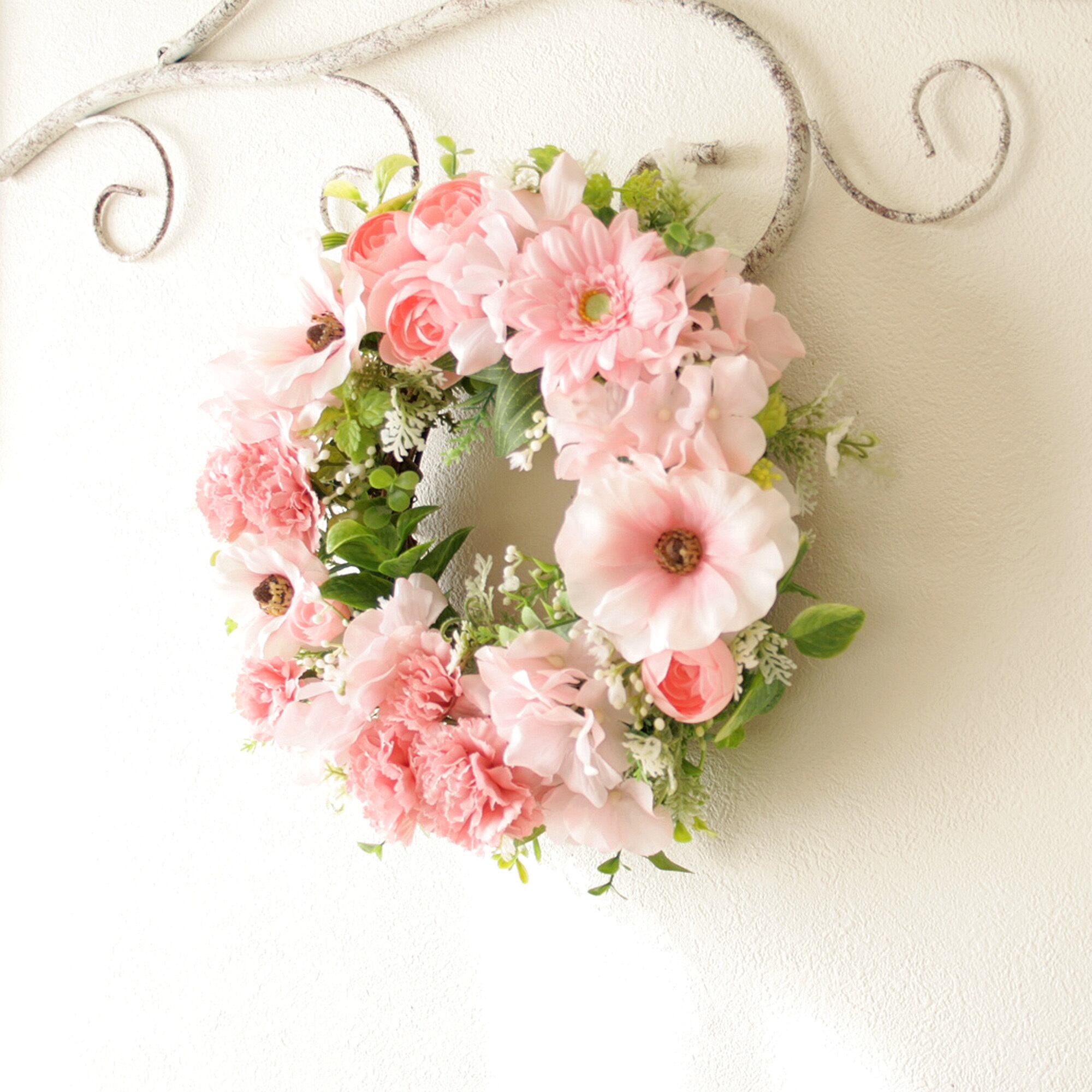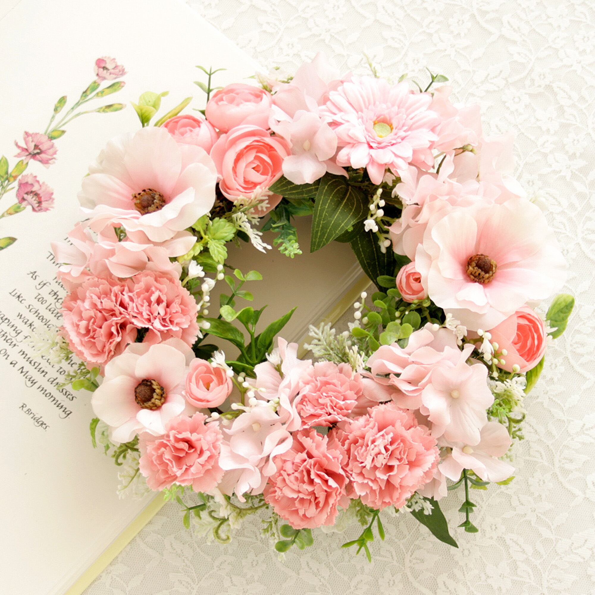 春色カーネーションのナチュラルフラワーリース[ピンク]