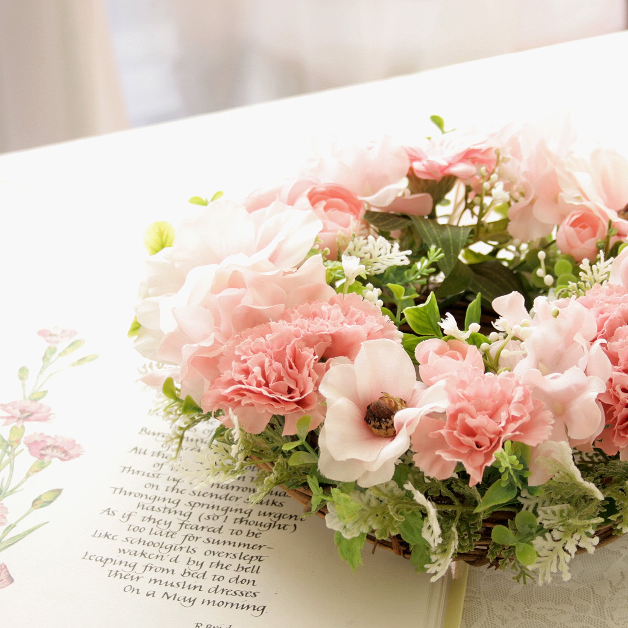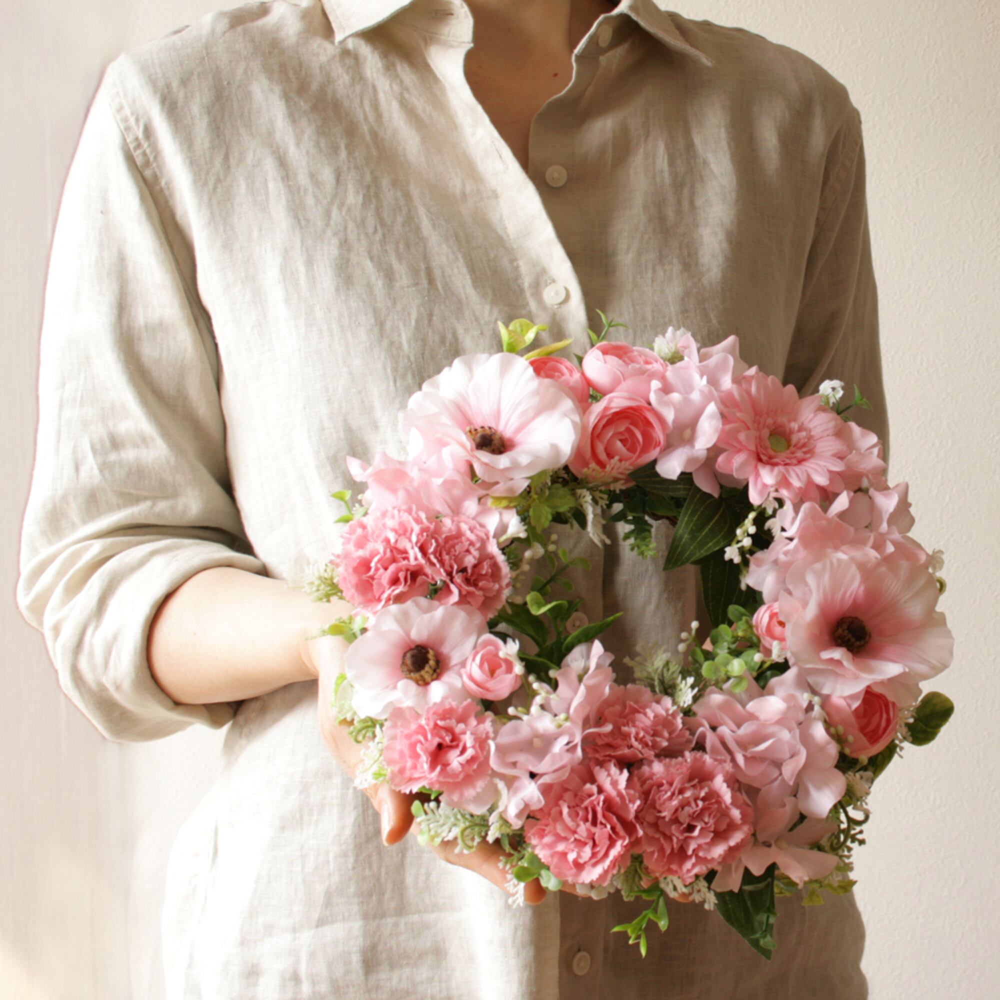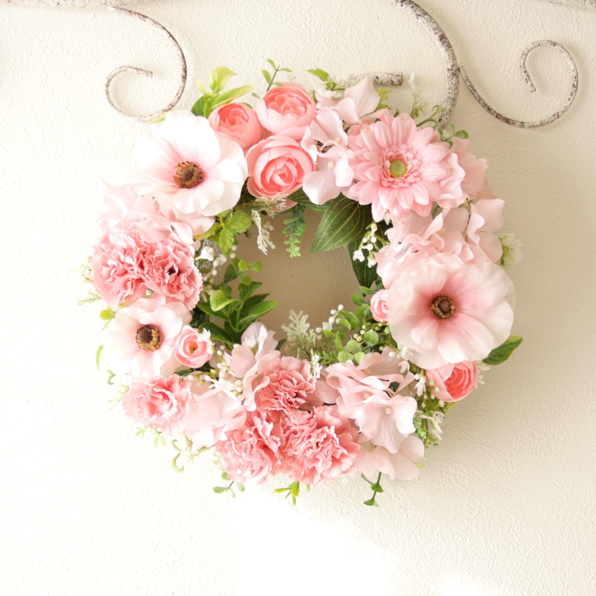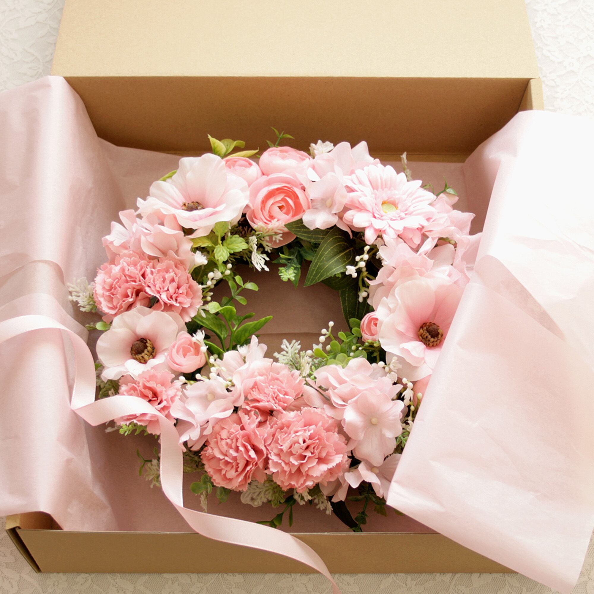 春色カーネーションのナチュラルフラワーリース[ピンク]