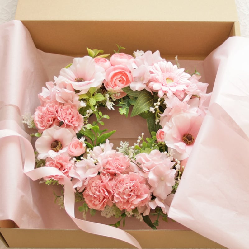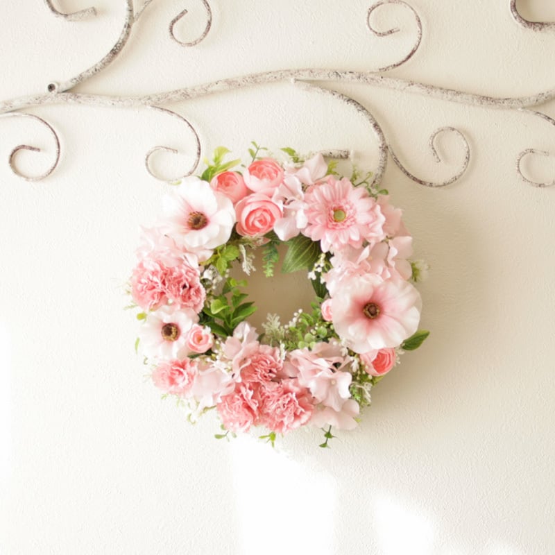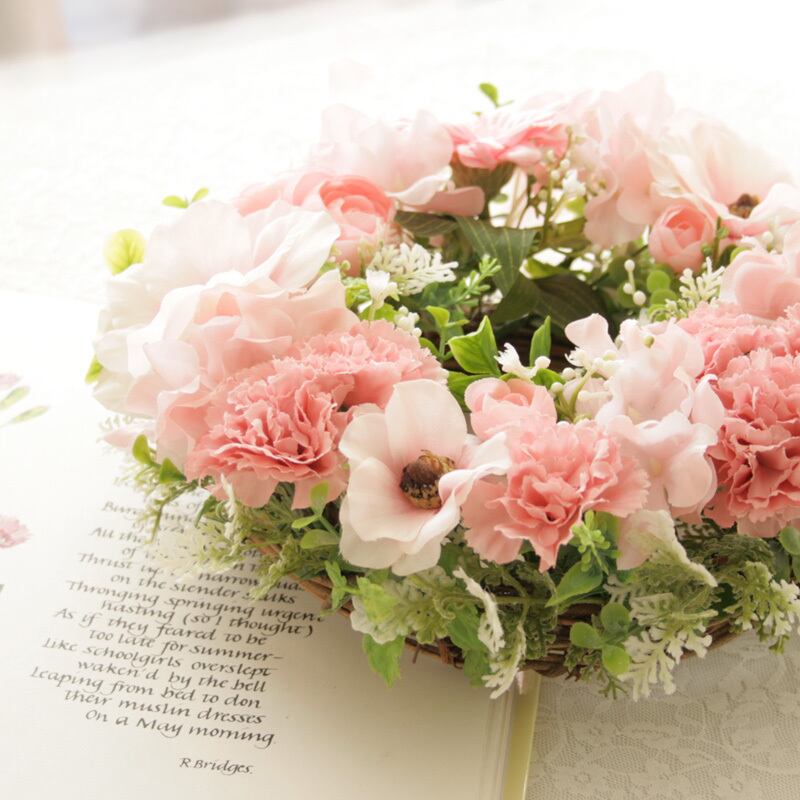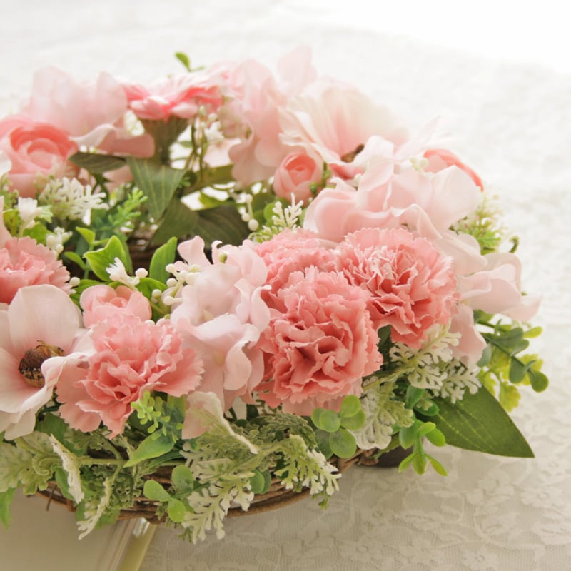 春色カーネーションのナチュラルフラワーリース