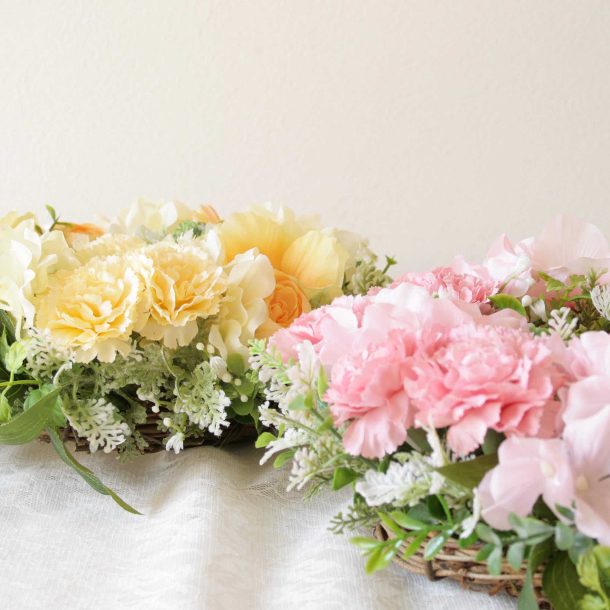 春色カーネーションのナチュラルフラワーリース[イエロー]