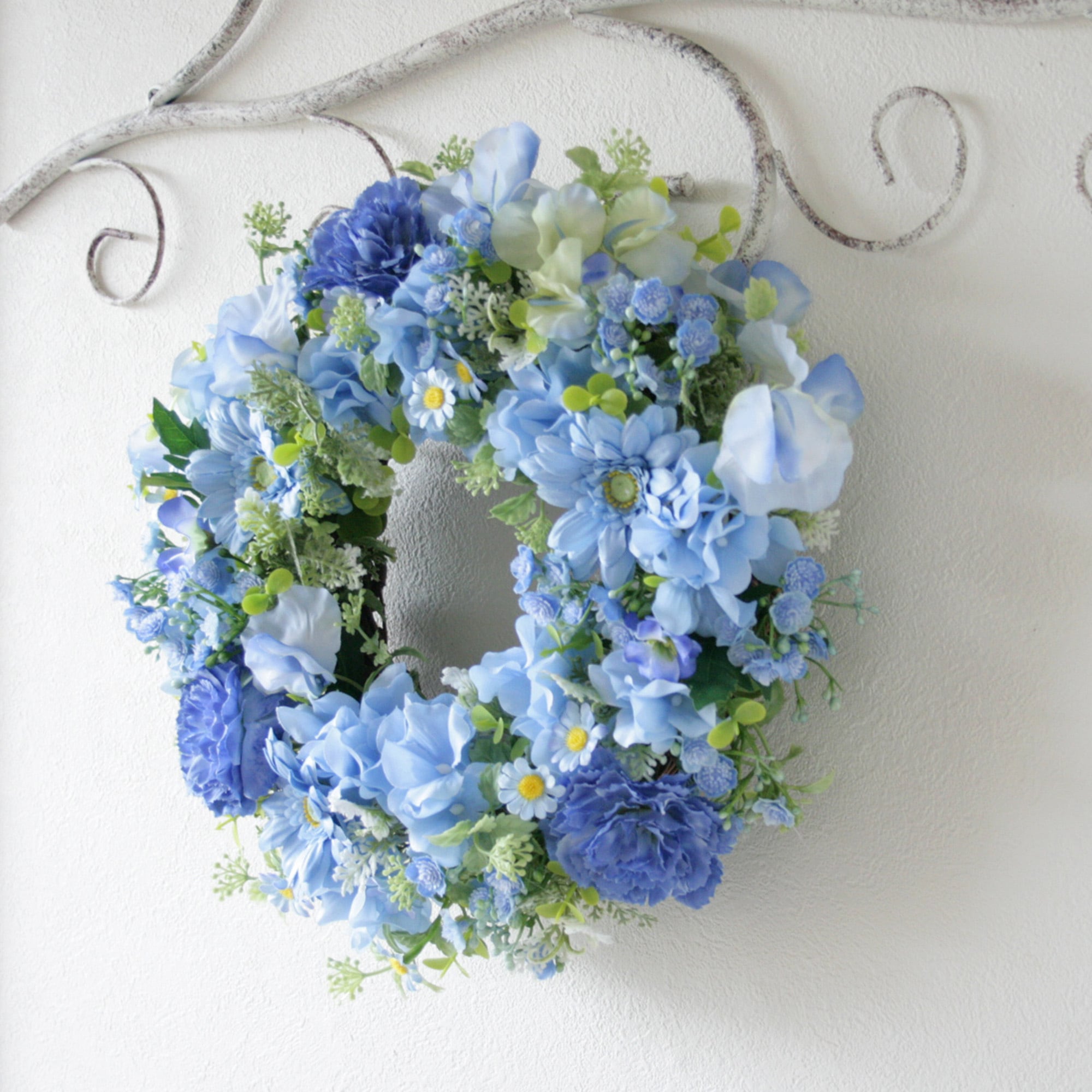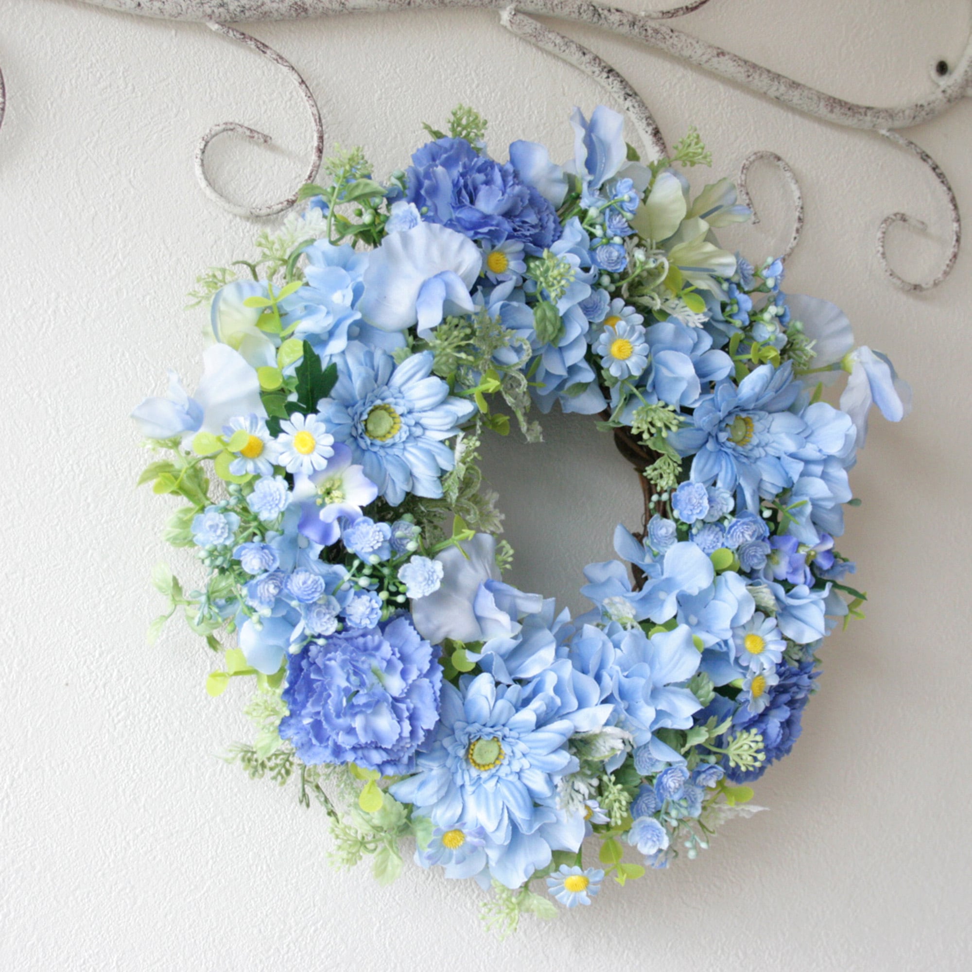 ブルーグラデーションのフラワーリース【Signature Collection】