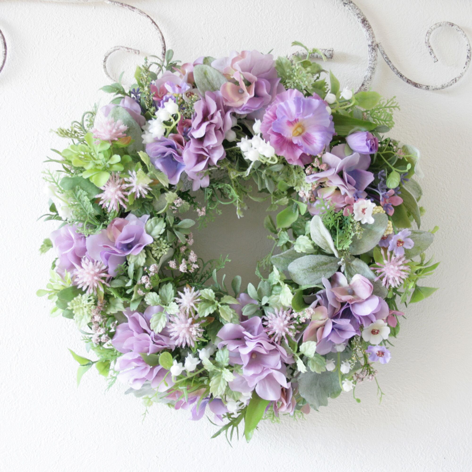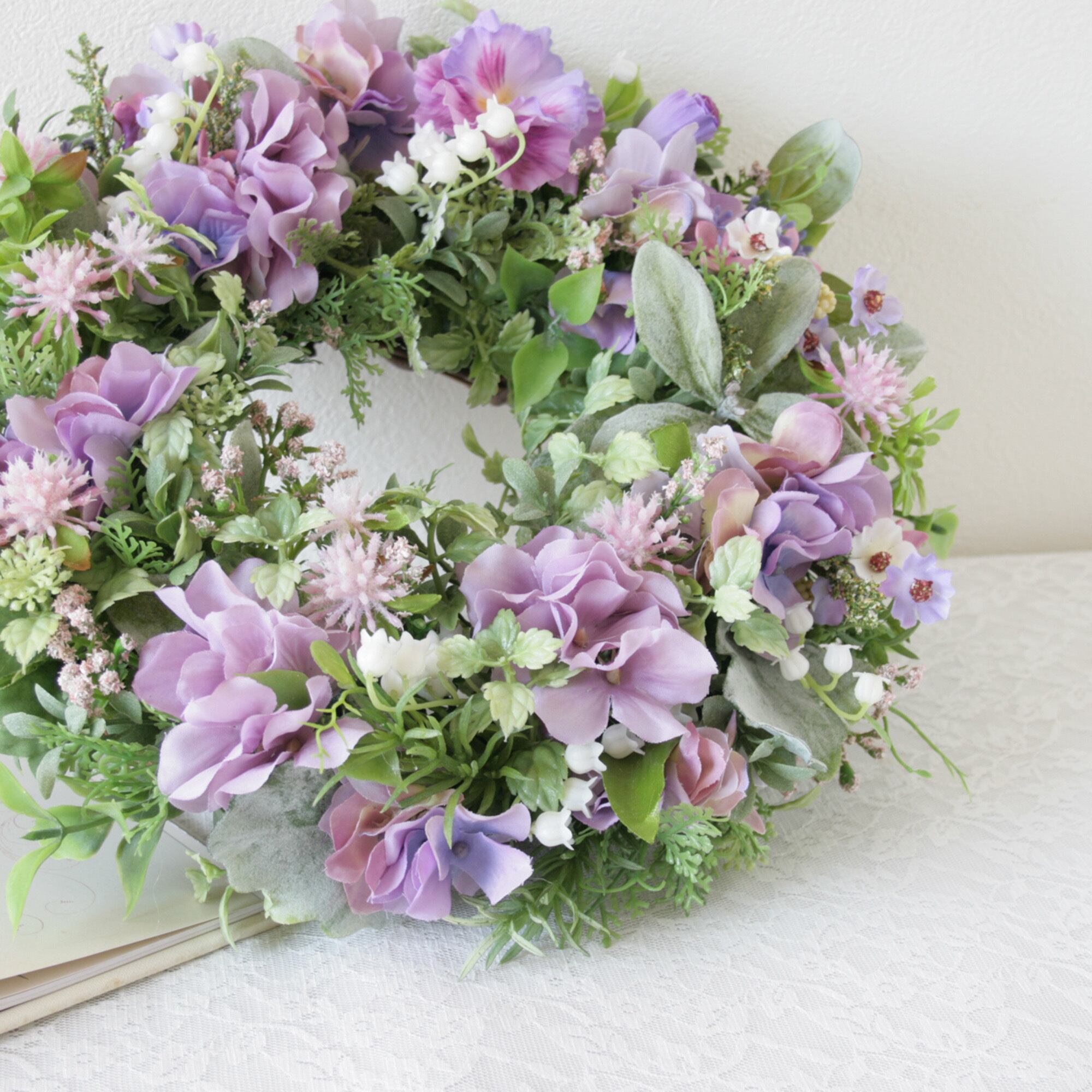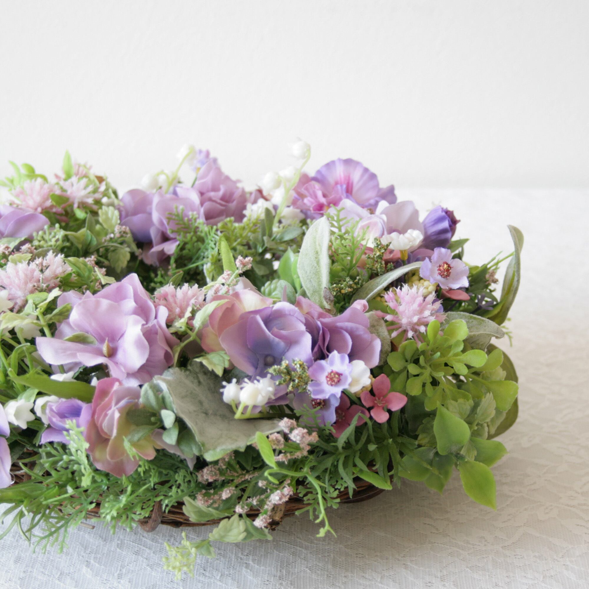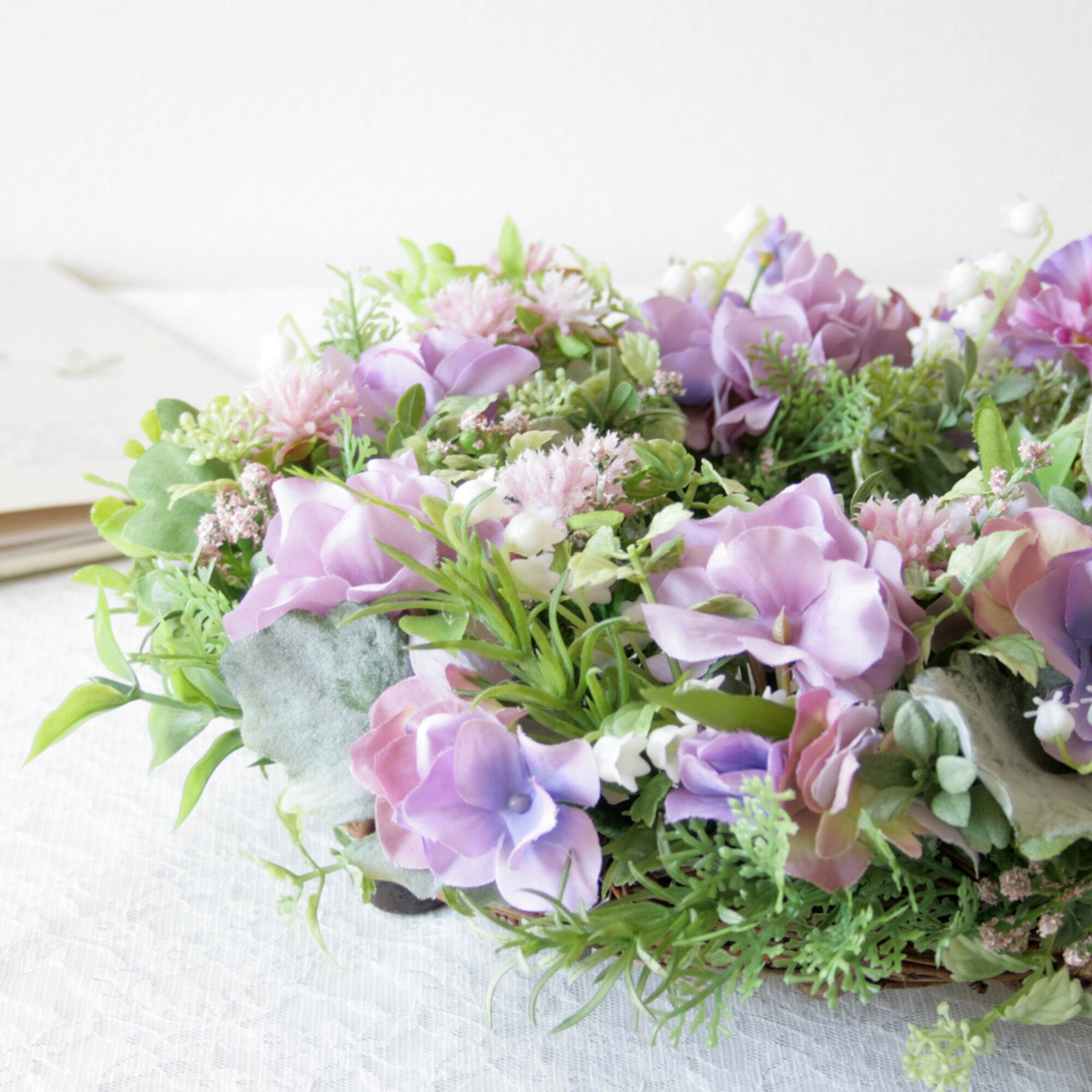 母の日ギフト フラワーリース パープルリース ラベンダーカラー ナチュラルリース