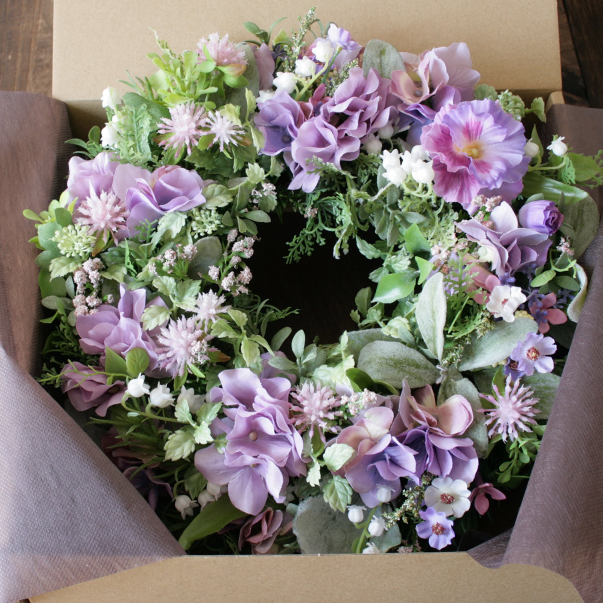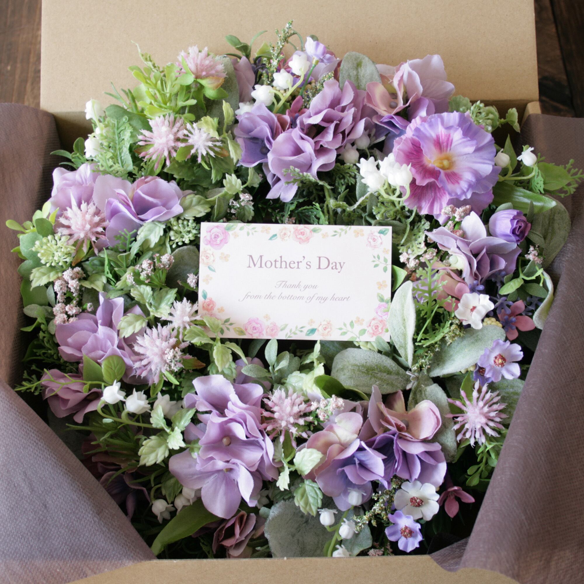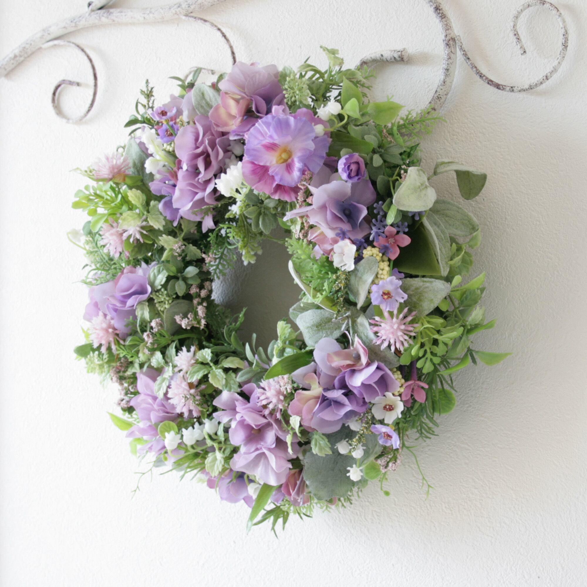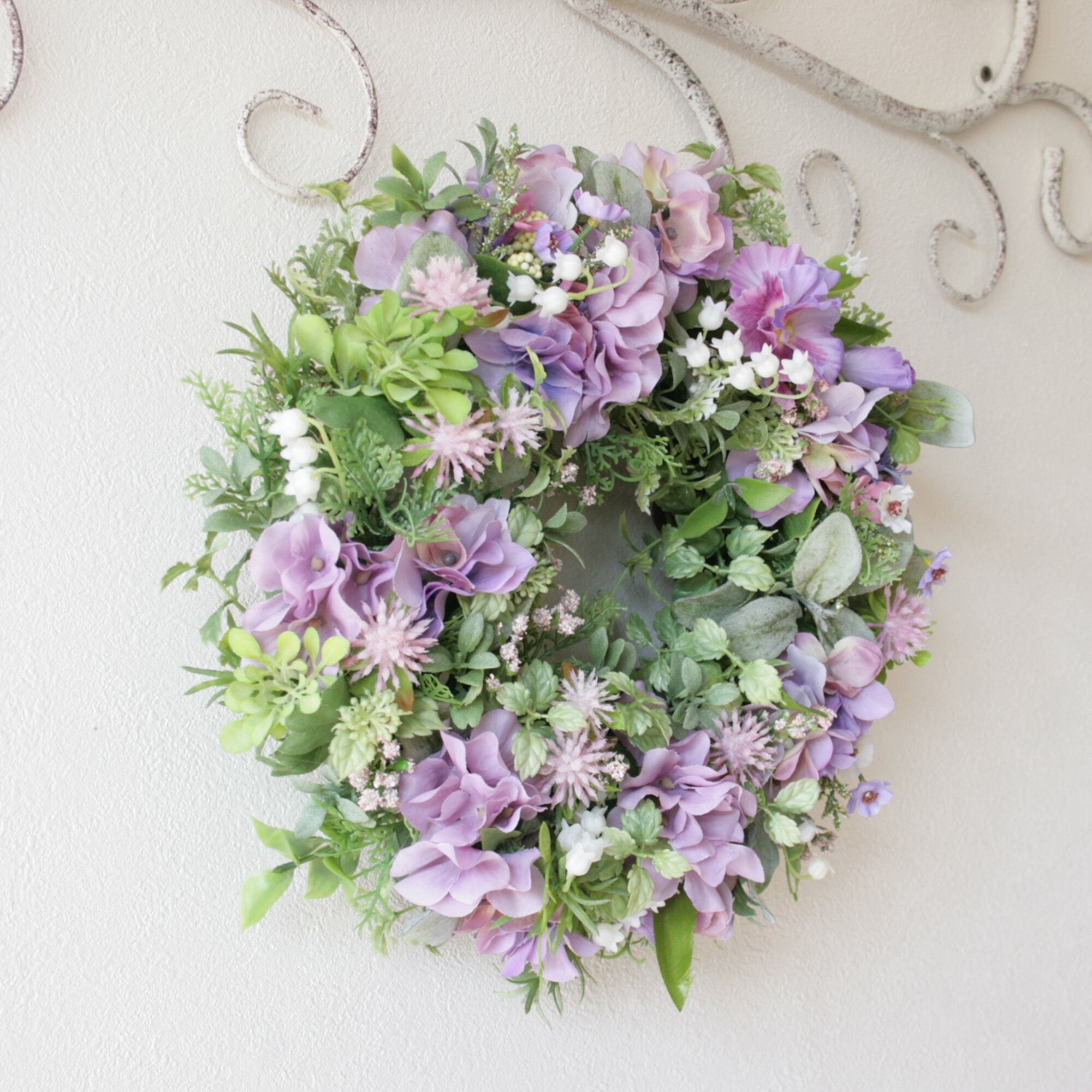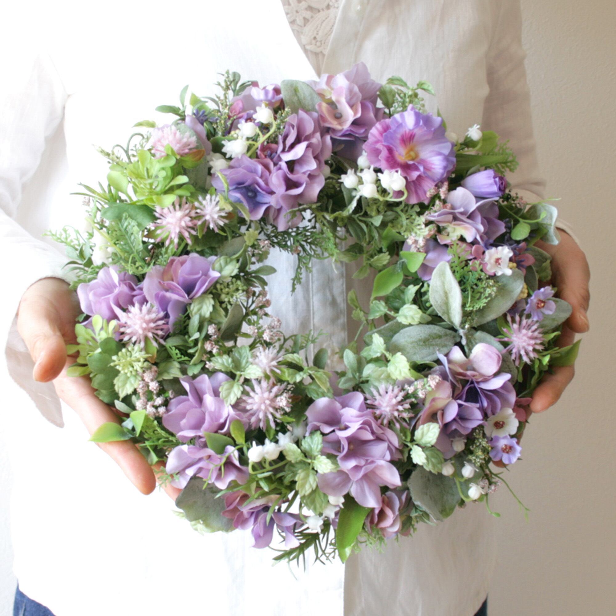 母の日ギフト フラワーリース パープルリース ラベンダーカラー ナチュラルリース