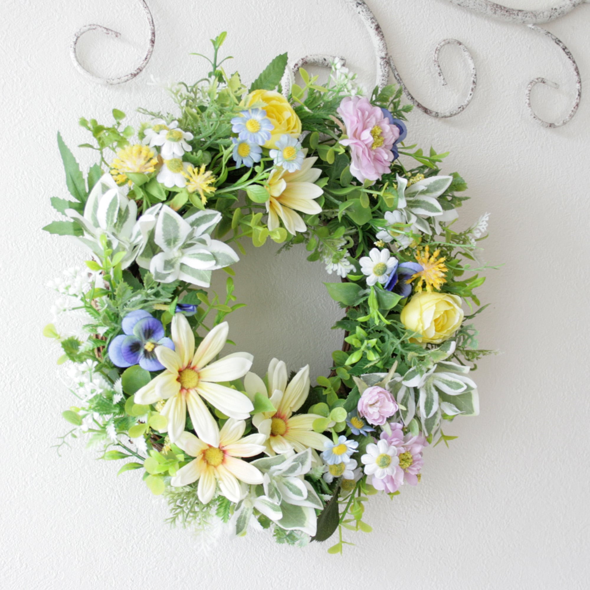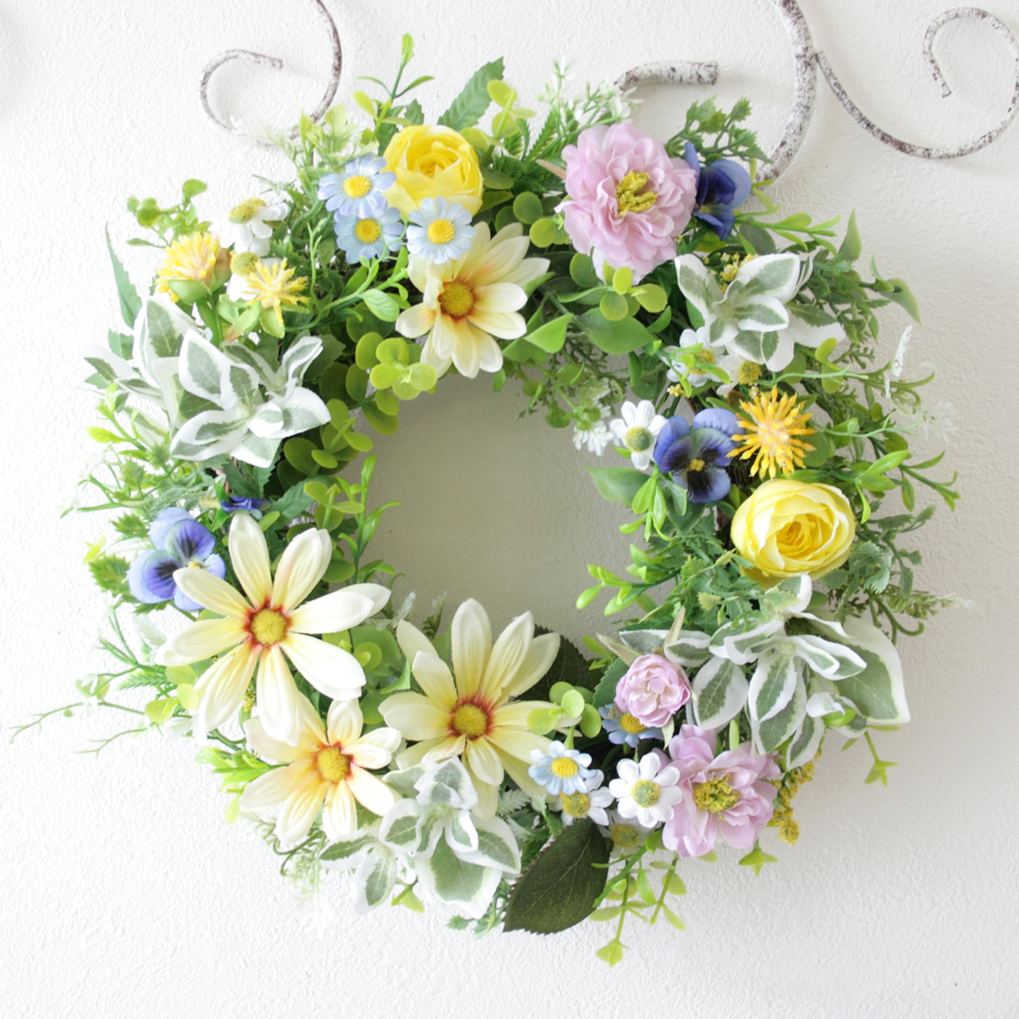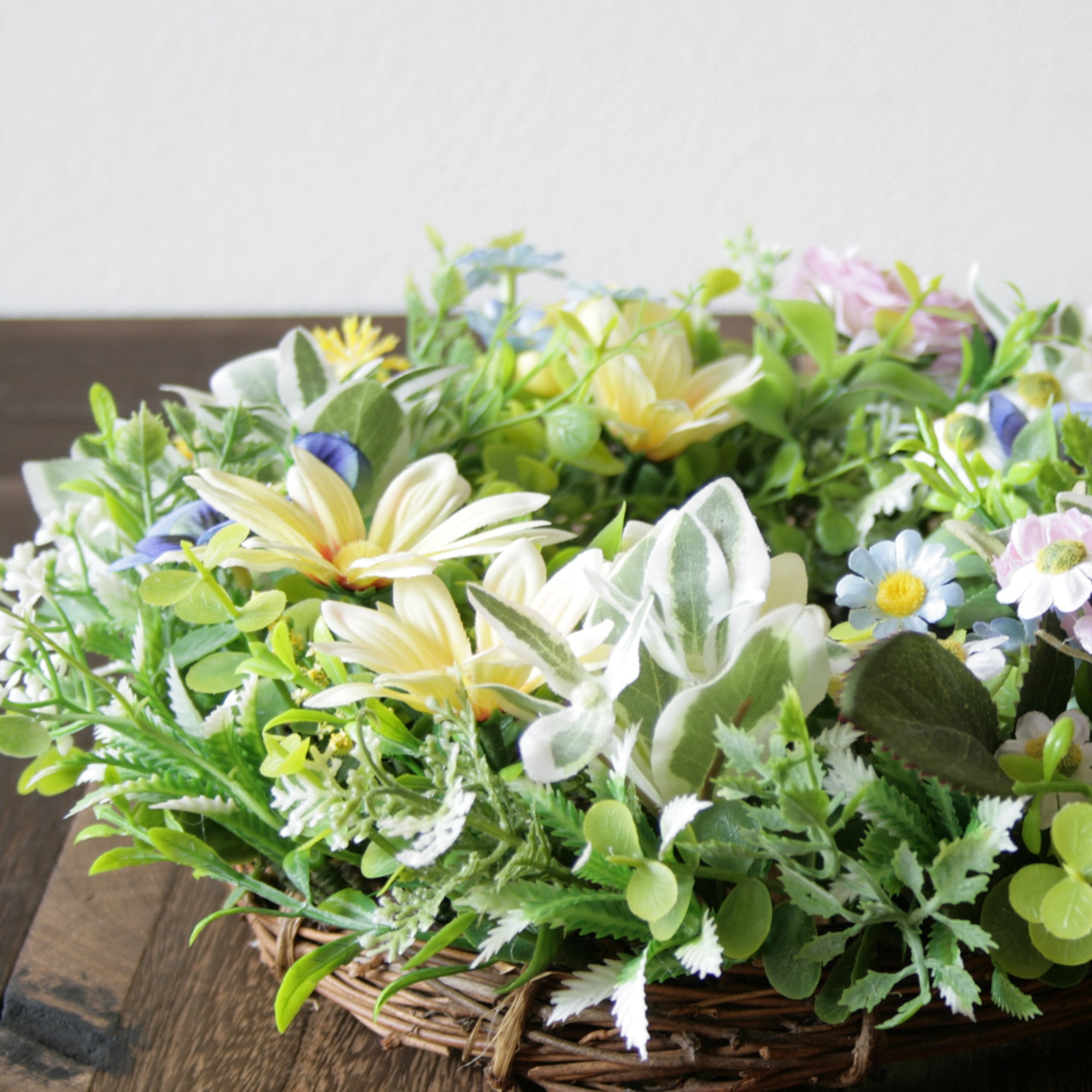母の日にも 元気が出る春色マーガレットリース[ナチュラル・カラフル/27cm]
