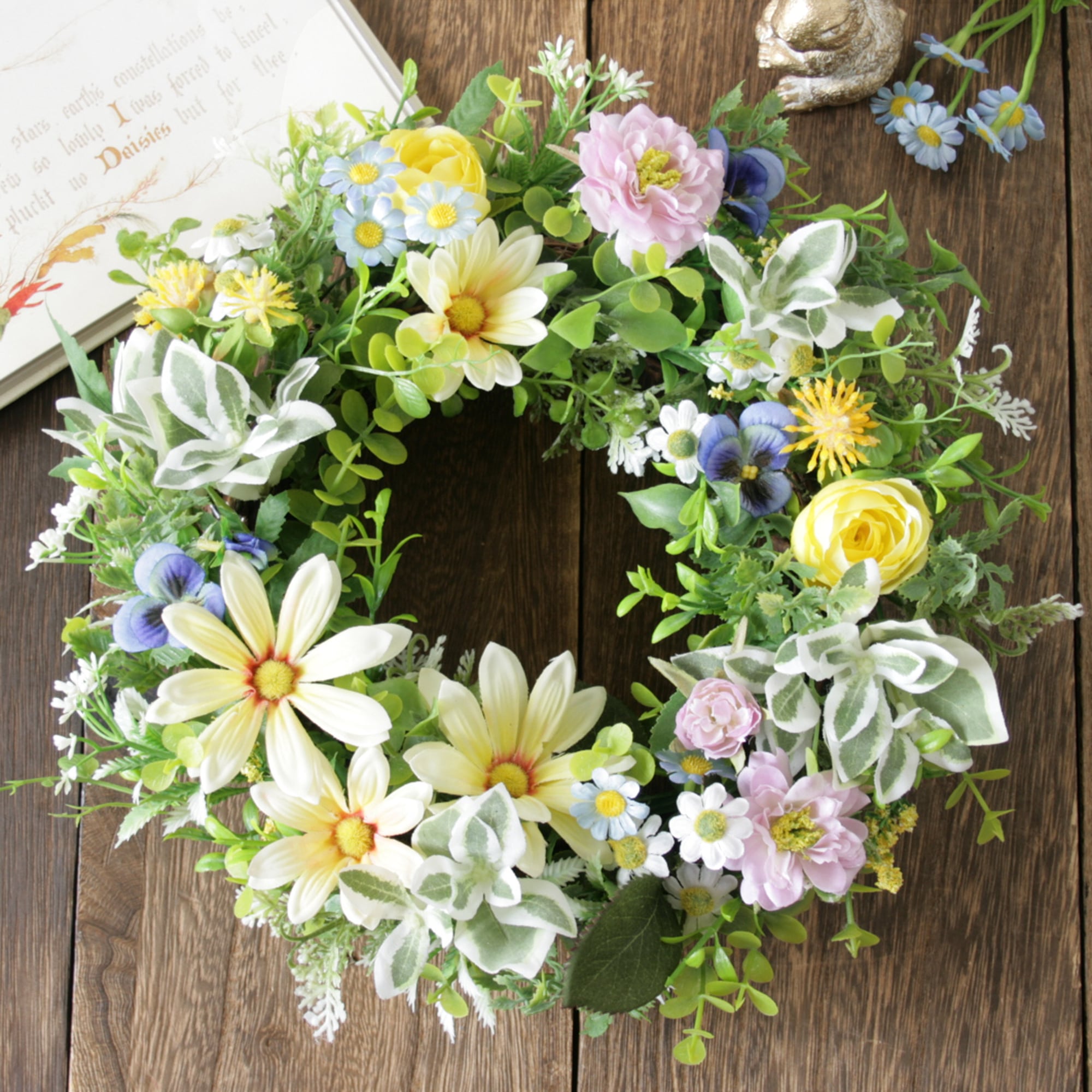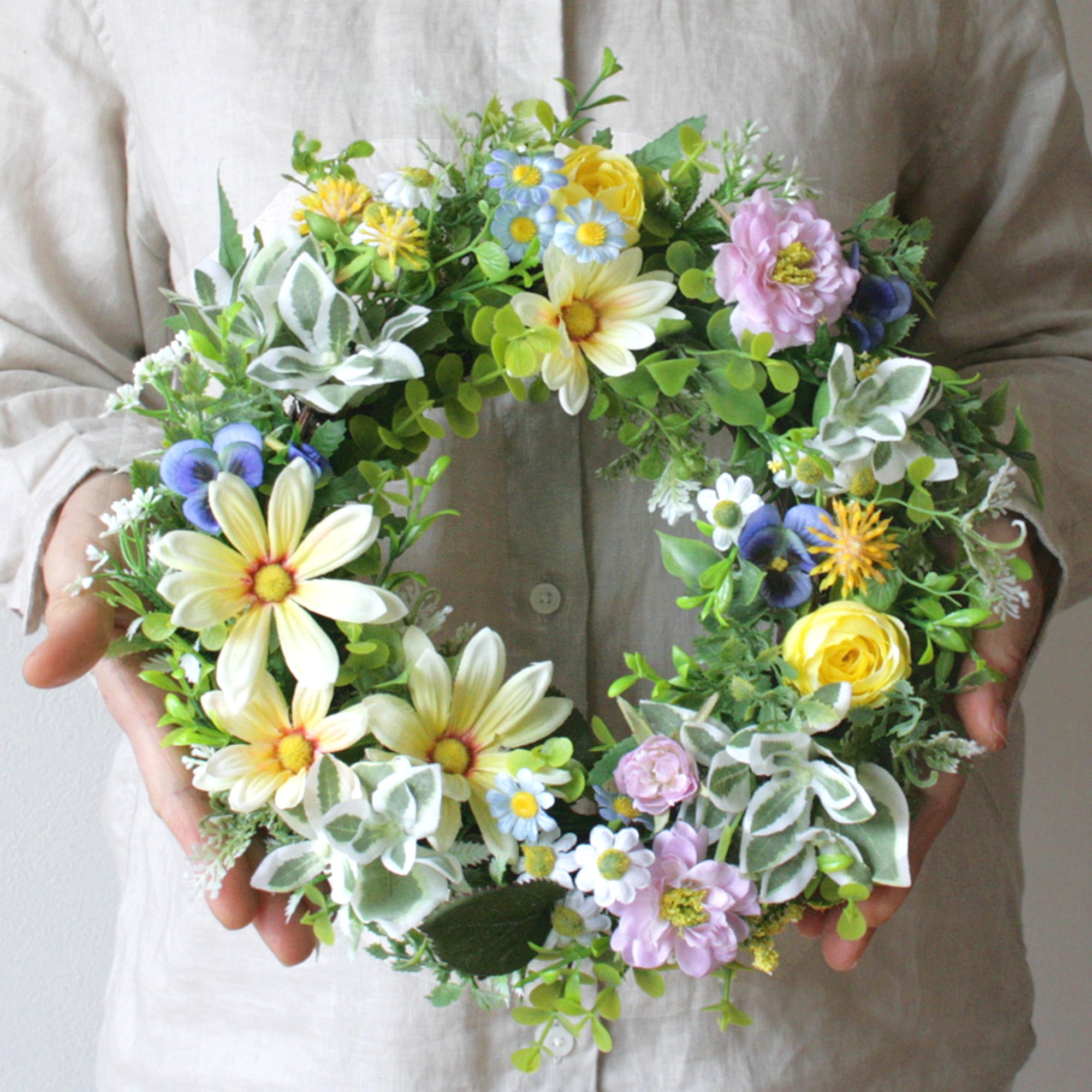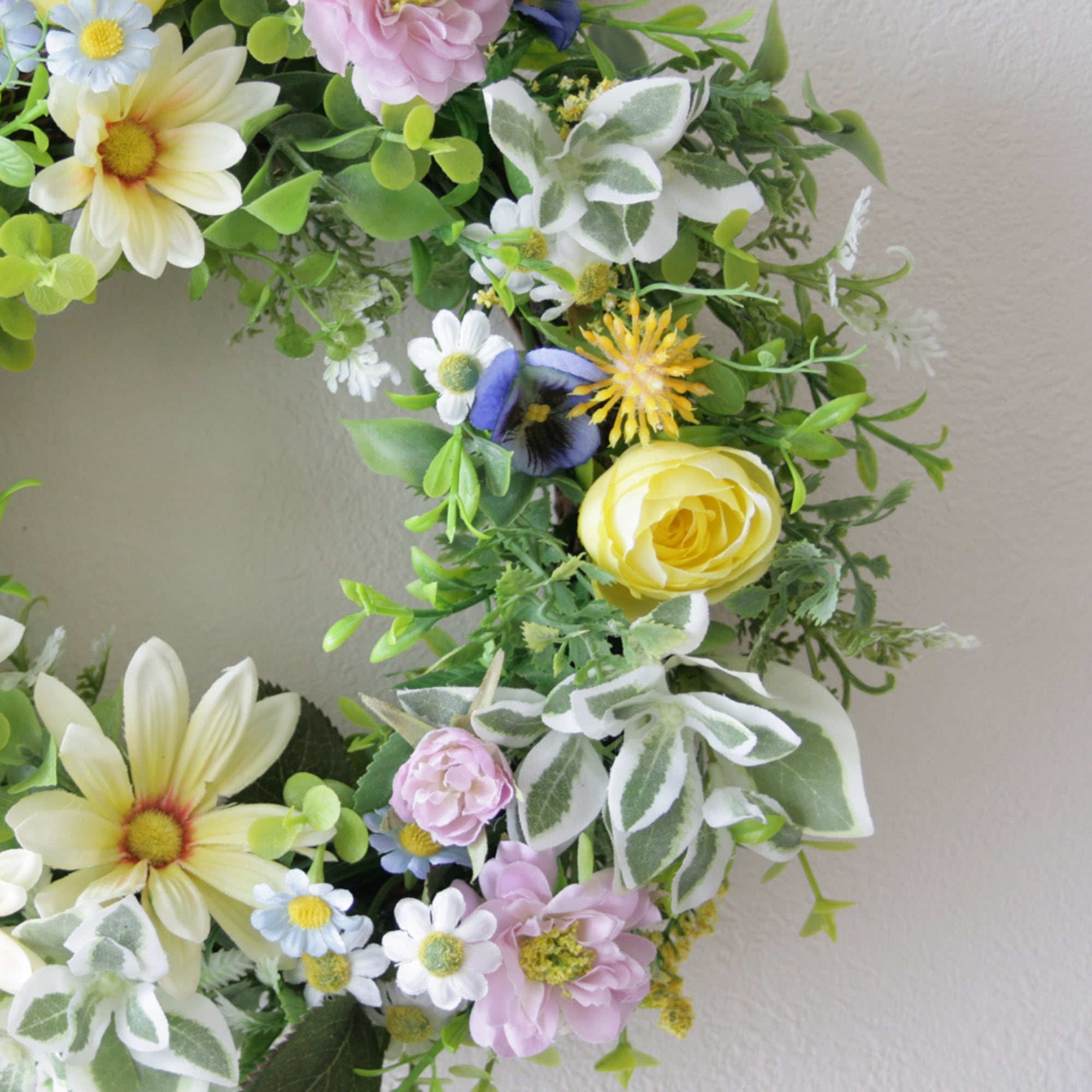 母の日にも 元気が出る春色マーガレットリース[ナチュラル・カラフル/27cm]