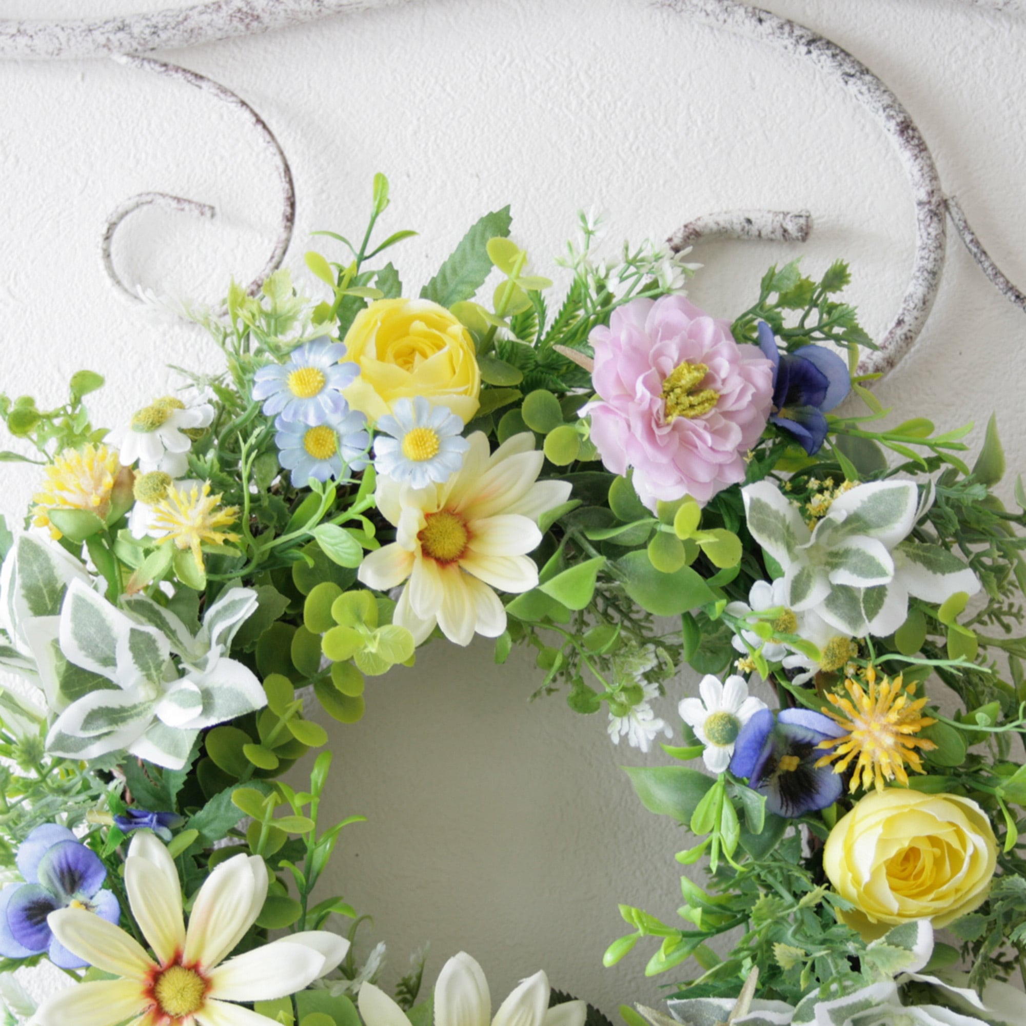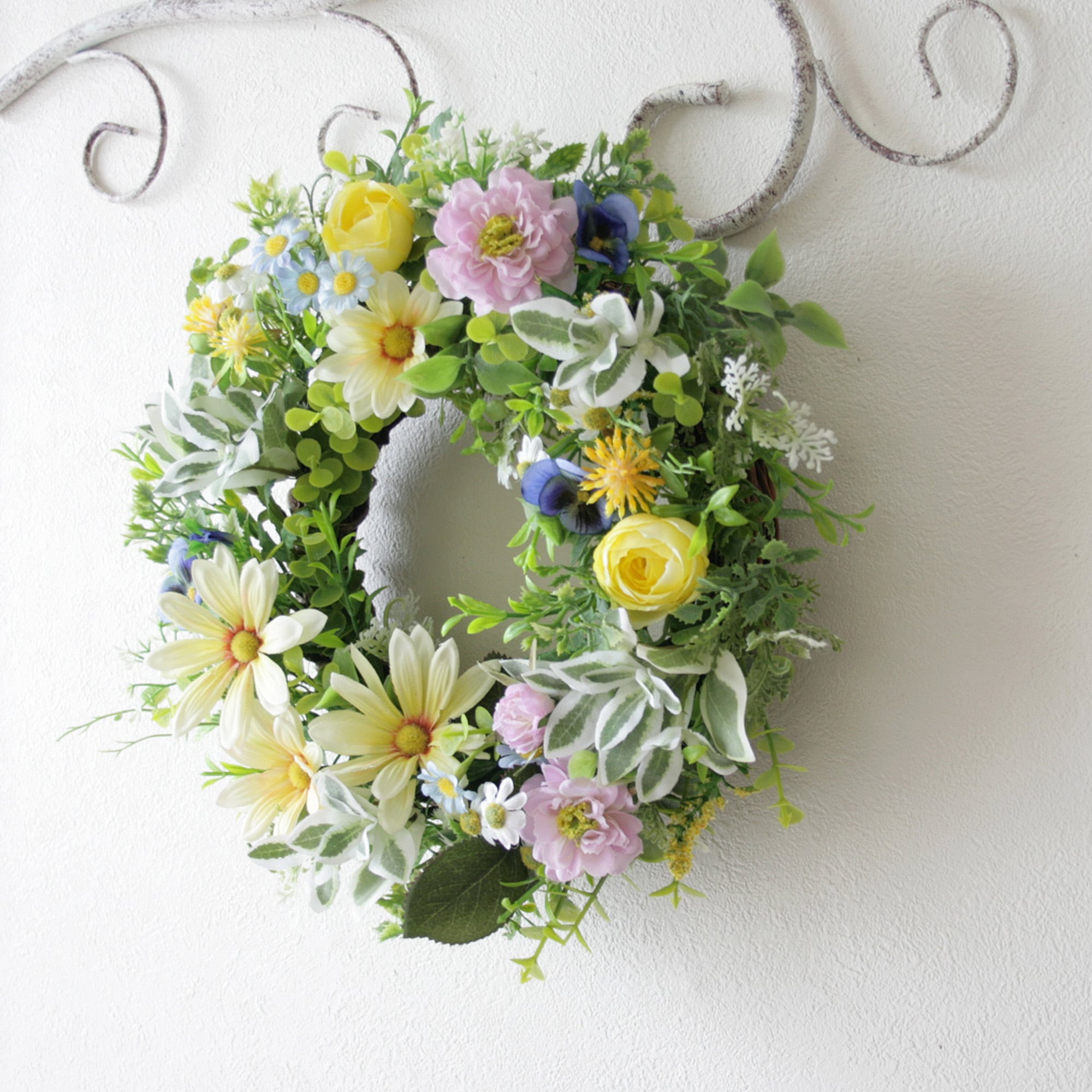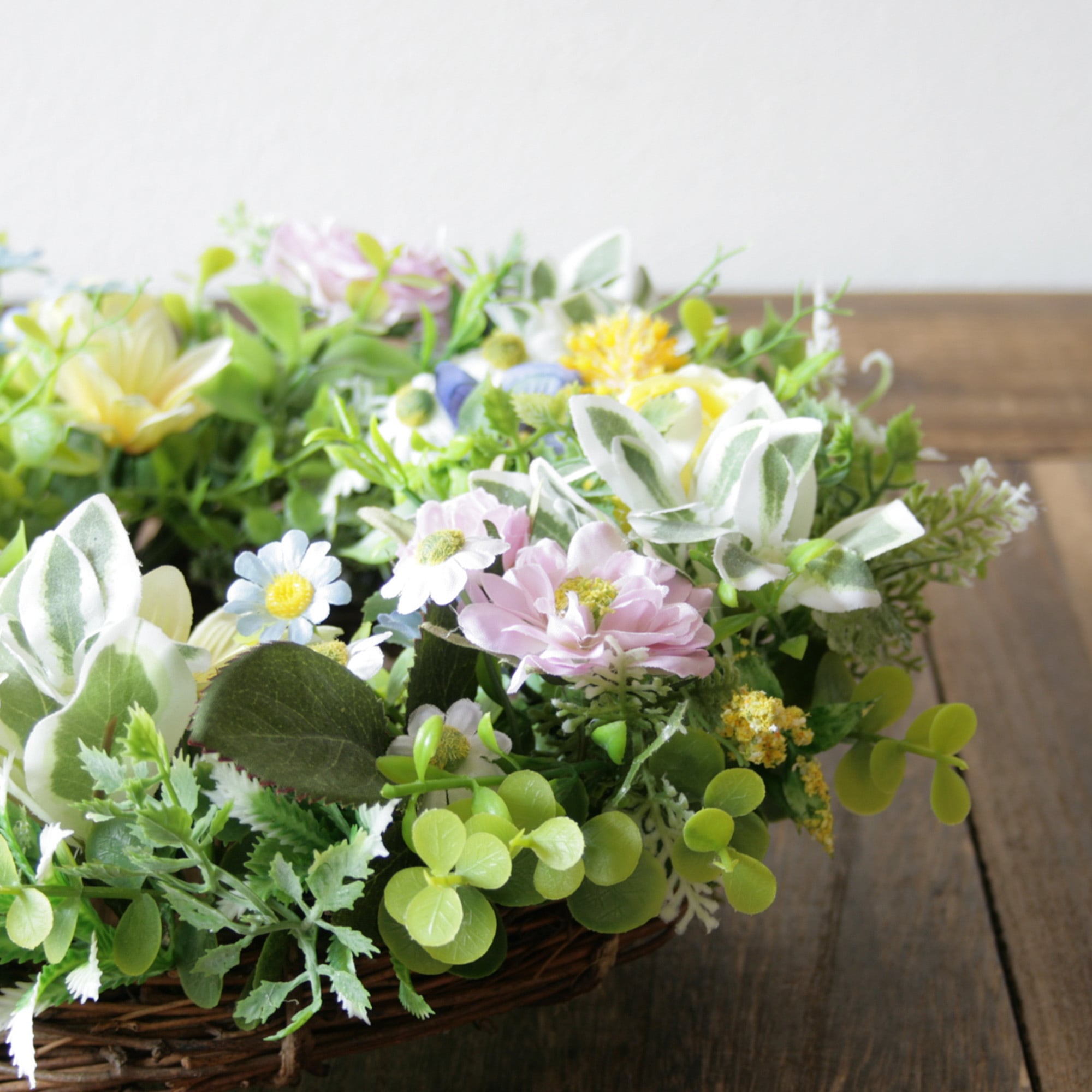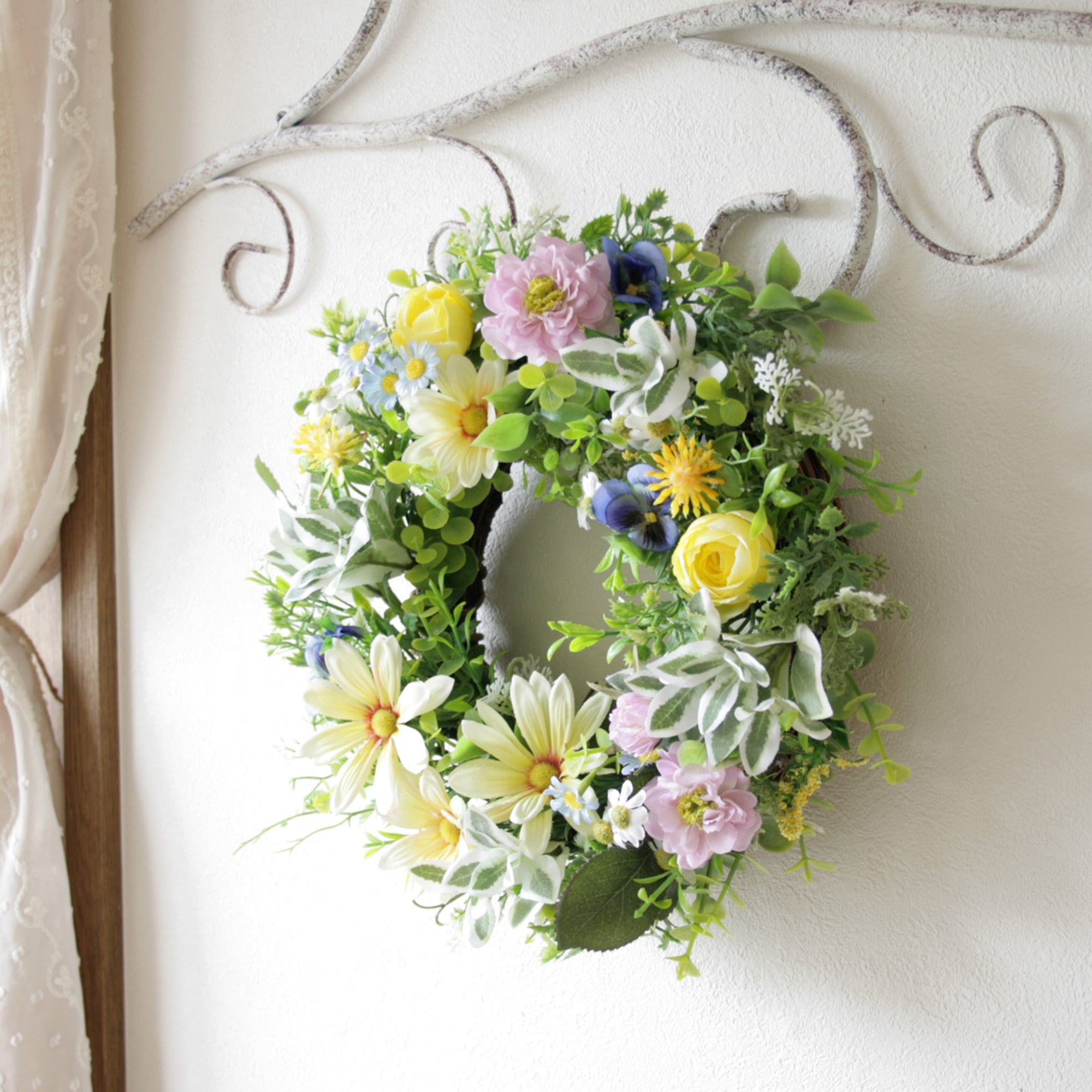 バランスよくあしらった明るく軽やかな春のリースです。