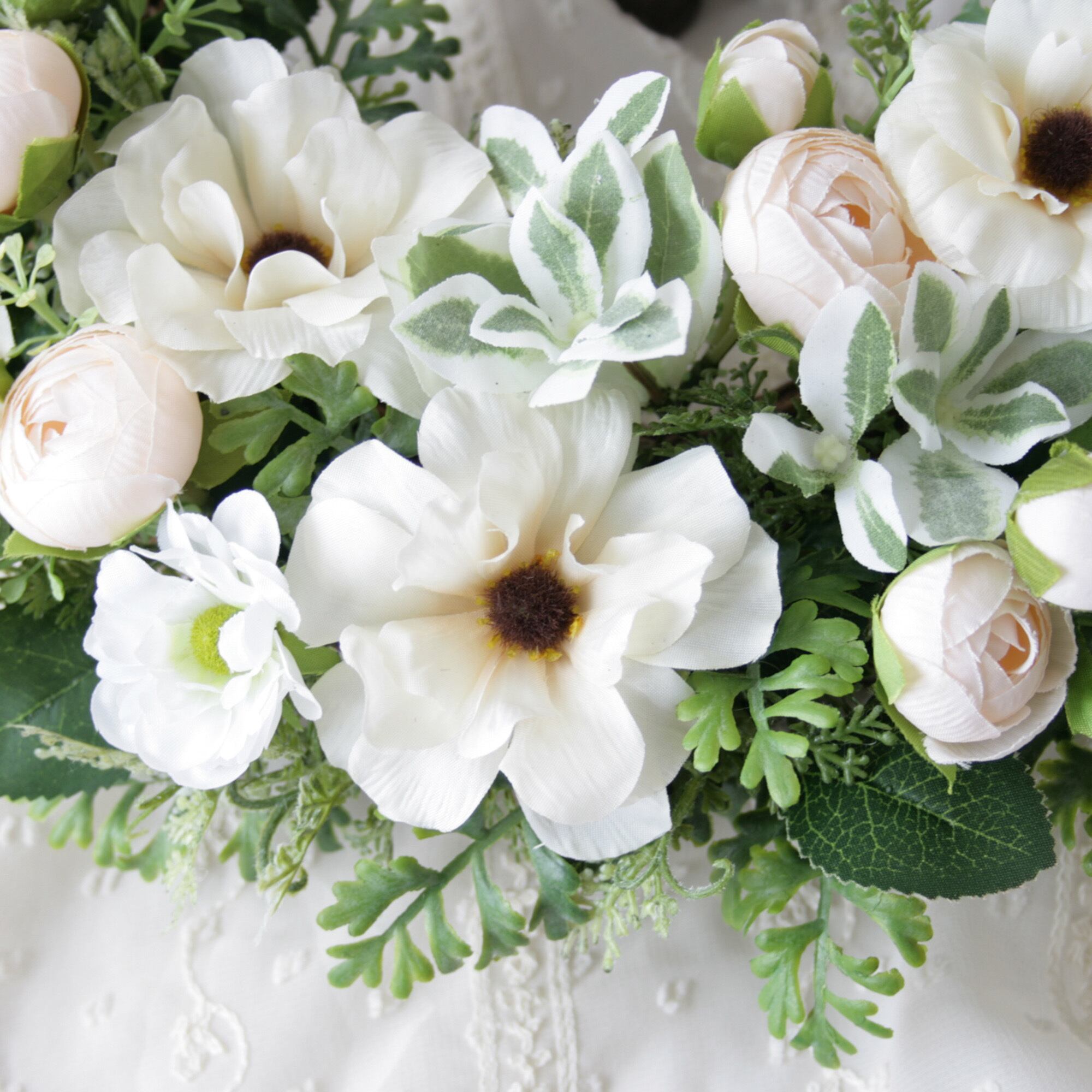 2種類のラナンキュラスを合わせ、やさしく華やかな印象に仕上げました。